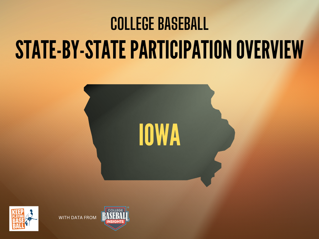 If you live in Iowa and are wondering what percentage of high school graduates from your state play at each college level and where they are playing, you’ve come to the right place. In this article, we team up with our friends at College Baseball Insights to provide you with state-level overview of your chances to play at the next level.
